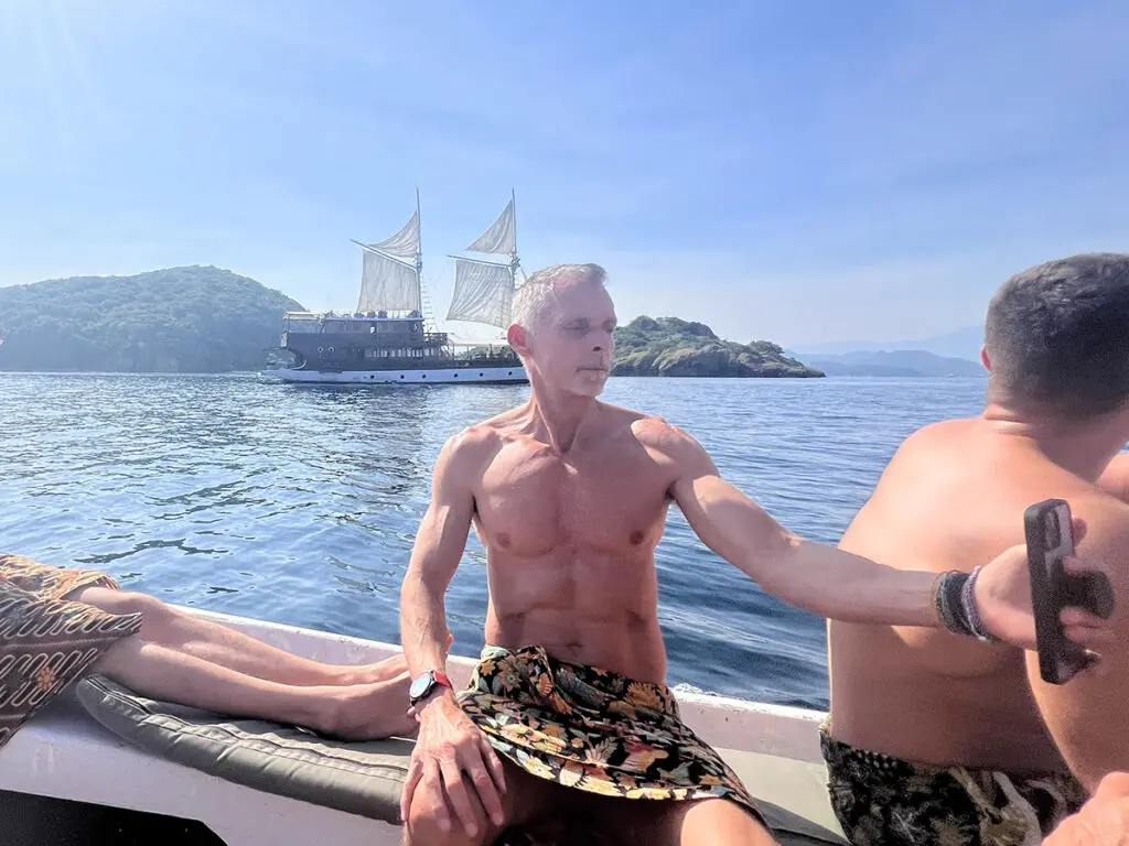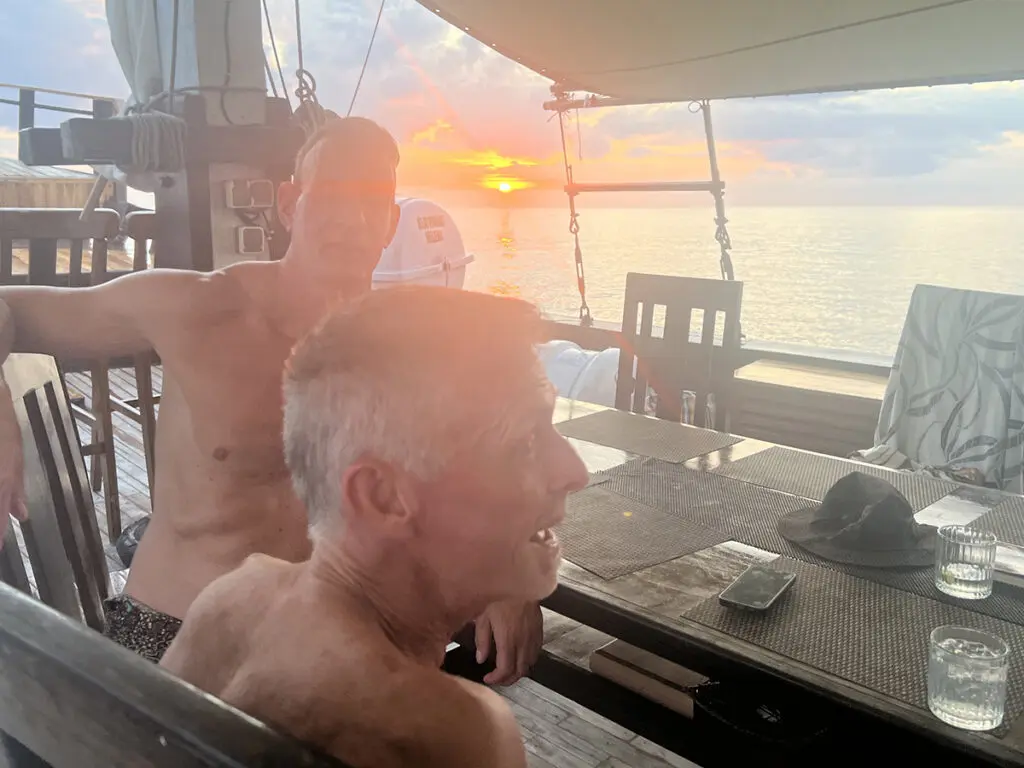 When you put a group of men on a boat for several days with no TV, something magical happens: conversations turn into adventures of their own. That’s exactly what unfolded when co-founder Dave sat down with Ray and Dean, a couple celebrating both twenty years together and a milestone birthday, during our Everything To Sea cruise. What started as a chat about what kind of “show” this trip would be (spoiler: White Lotus, but without the deaths) turned into reflections on naked firsts, unexpected camaraderie, and the kind of mental photos you can’t capture on an iPhone.