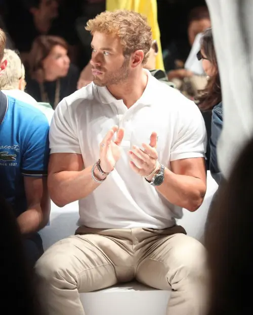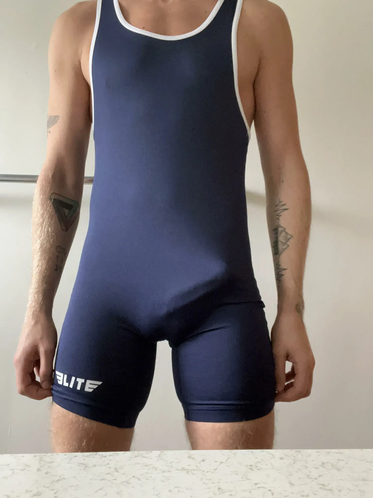 Erection visible beneath clothing