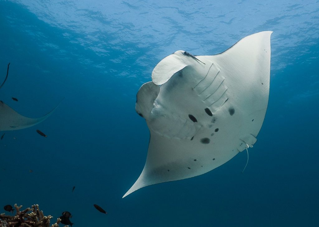 Until as recently as 2008, scientists learned there are in fact two different subspecies of manta rays: the giant manta ray and the reef manta ray. Cruising the clear waters of Indonesia are mainly the smaller reef manta rays. But don’t let that comparison fool you, this subspecies can have a wingspan of up to 3.3 meters wide. More coastal by nature, reef manta rays can be spotted while sailing with Everything To Sea.