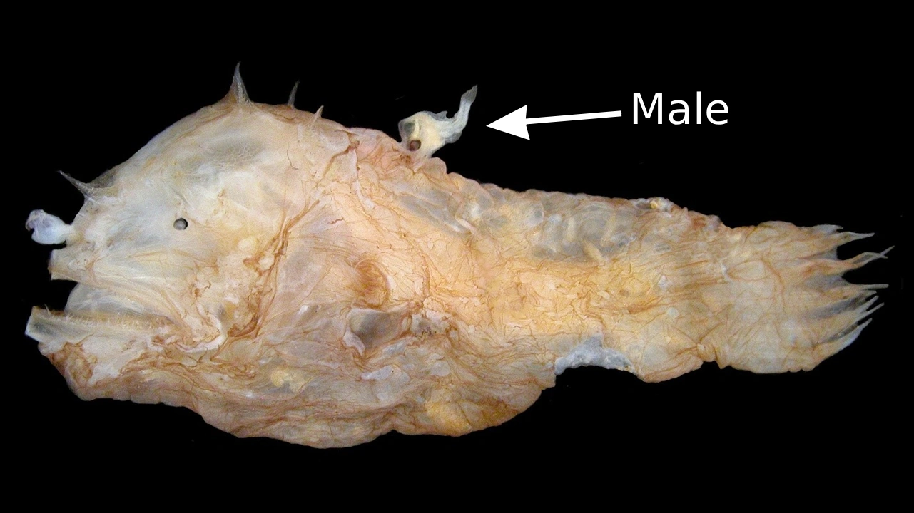 If any creature deserves the title of biological horror icon, it’s the anglerfish. In many deep-sea species, the male is dramatically smaller than the female. When he encounters her, he bites into her body and eventually fuses with her tissue. His organs dissolve, his independence disappears, and he becomes a permanent source of sperm, living out the rest of his existence as a biological attachment. Some females carry multiple fused males at once. This is not metaphorical horror. It is literal anatomy.